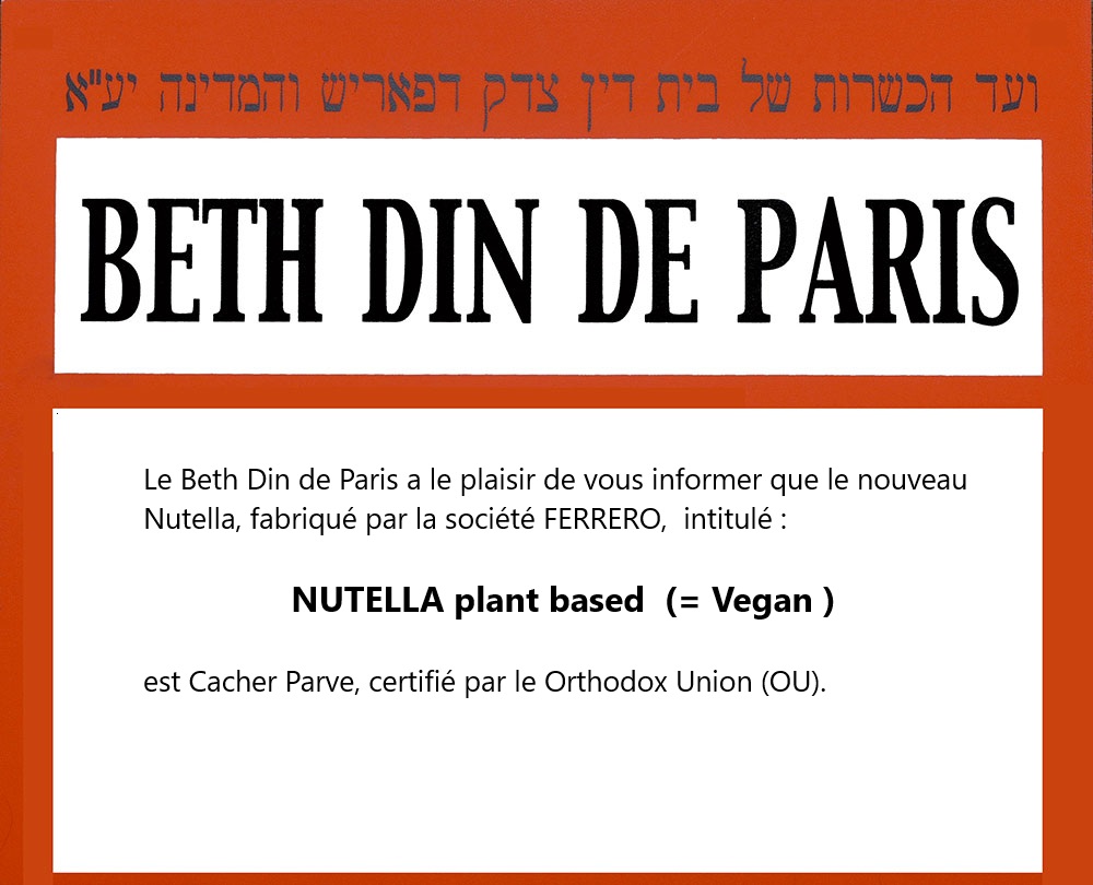 Septembre 2025 – Nutella Vegan certifié par le O.U.