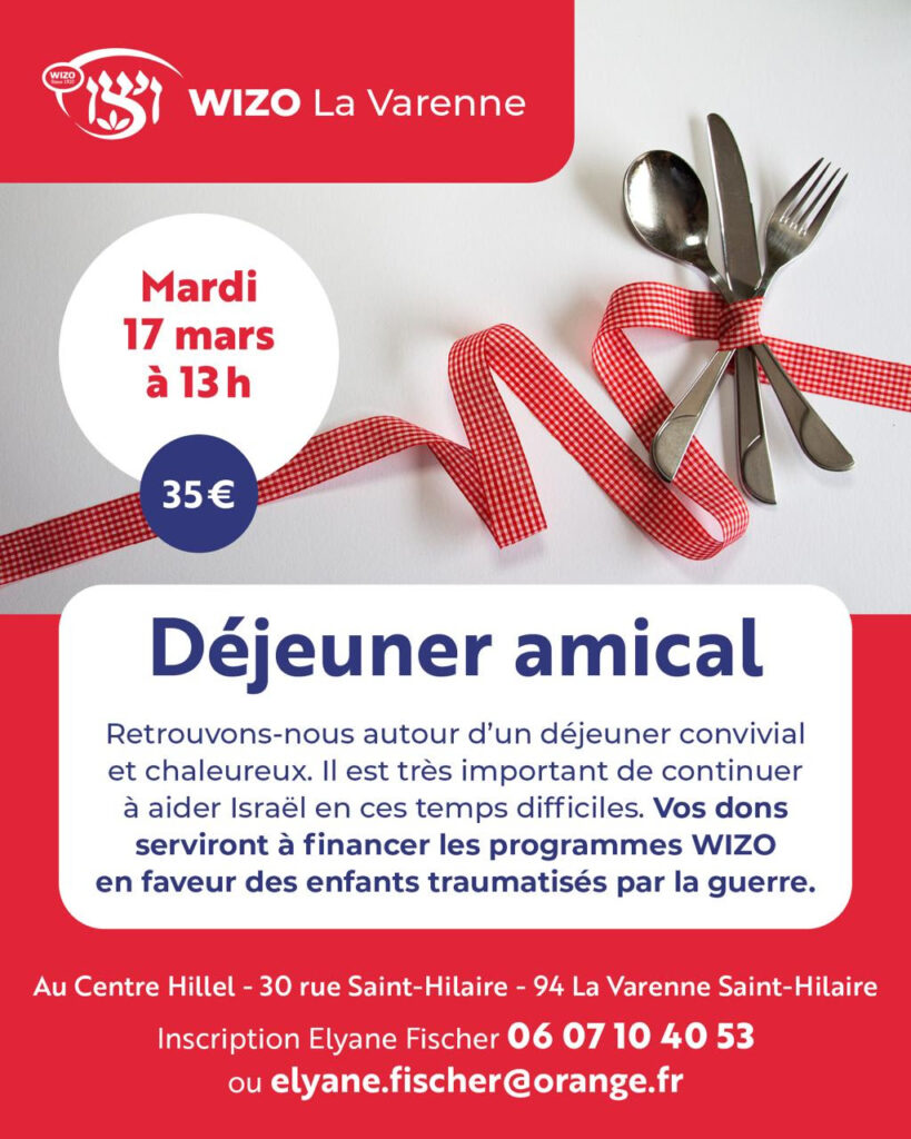 A cet effet, la WIZO organise un grand déjeuner le 17 mars 2026.