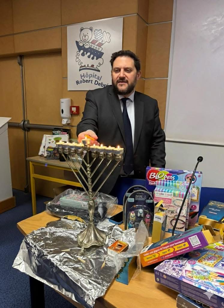 Sous l’impulsion de l’aumônerie nationale des hôpitaux de France, dirigée par le Rabbin Mikael Journo, et avec l’engagement remarquable de l’aumônerie de l’hôpital Robert Debré, dirigée par Madame Asnath Saada, une grande fête de Hanouccah a été organisée pour les enfants, à la fois dans les chambres et dans l’amphithéâtre de l’hôpital. Dans un amphithéâtre rempli de sourires, d’attente et d’émotion, les bougies de Hanouccah ont été allumées dans une atmosphère de joie, de chaleur humaine et de partage.